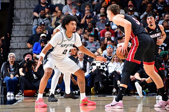 本场比赛中,马刺的替补后场新秀迪伦-哈珀(Dylan Harper)继续着自己开季以来的稳定表现。哈珀全场出场24分50秒,投篮10中5,三分线外5中2,罚球2中1,得到了13分2篮板4助攻的数据,还有2次失误和1次犯规,正负值为+6。哈珀在进攻端依然有着稳定的进攻效率,他的得分手段相当丰富,他在传球和组织方面也能够起到一定的作用,他在场上简直是游刃有余,完全看不出是一名刚刚进入NBA的年轻新秀。哈珀在防守端的表现也算是中规中矩,也没有出现什么太大的问题。总体来看,哈珀在攻防两端都发挥出了自己的价值,他扮演好了第六人的角色,他在场上时球队的局面也是相当不错的,他也是为球队的这场关键胜利做出了自己的贡献。